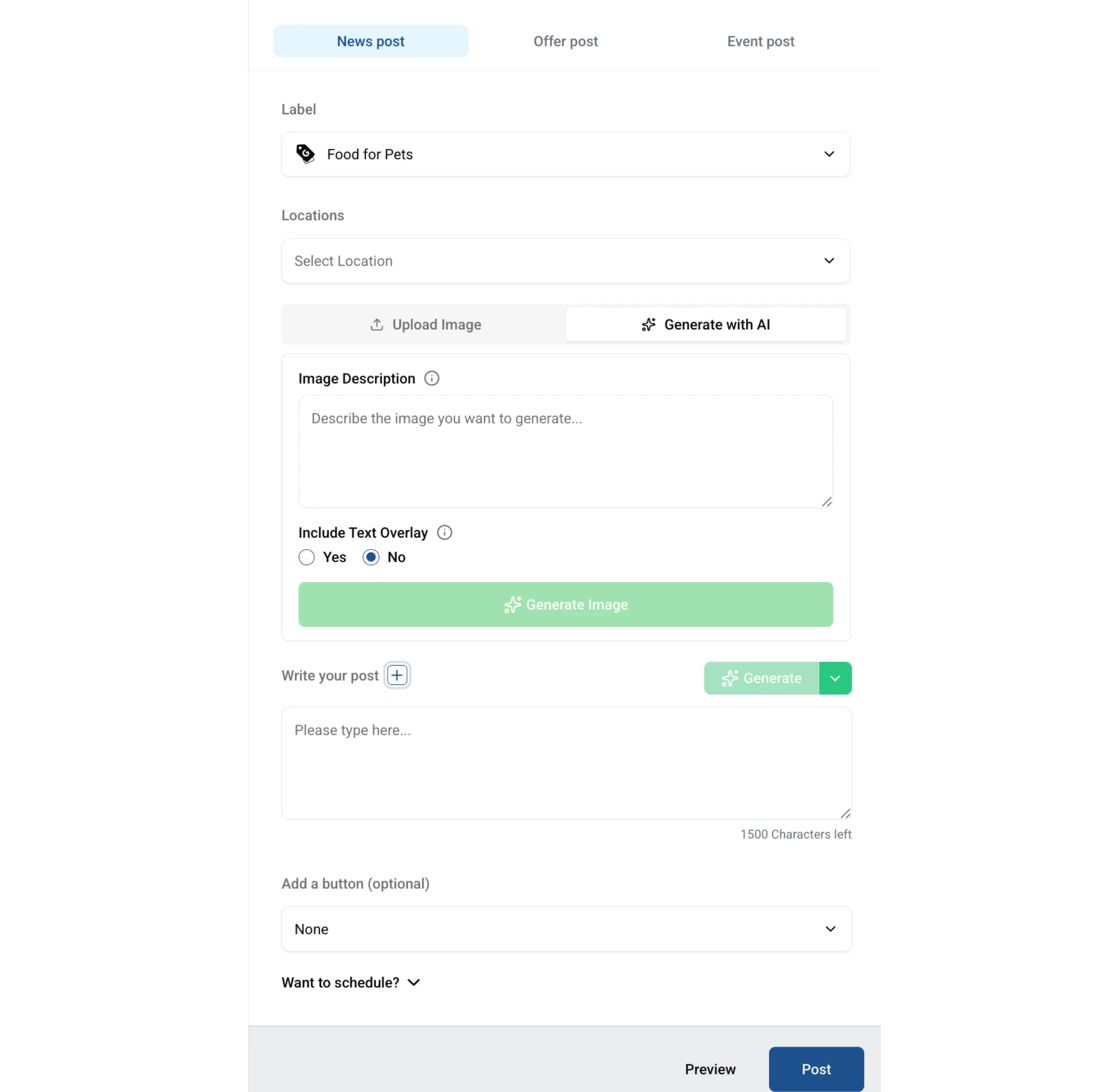 Non avete tempo per creare contenuti? Lasciate che la nostra IA sbrighi il lavoro duro. Utilizzate la nostra IA per generare automaticamente foto e descrizioni coerenti e di alta qualità per la vostra attività. Basta con la creazione manuale di contenuti, basta generare e pubblicare su tutte le vostre sedi in pochi clic.