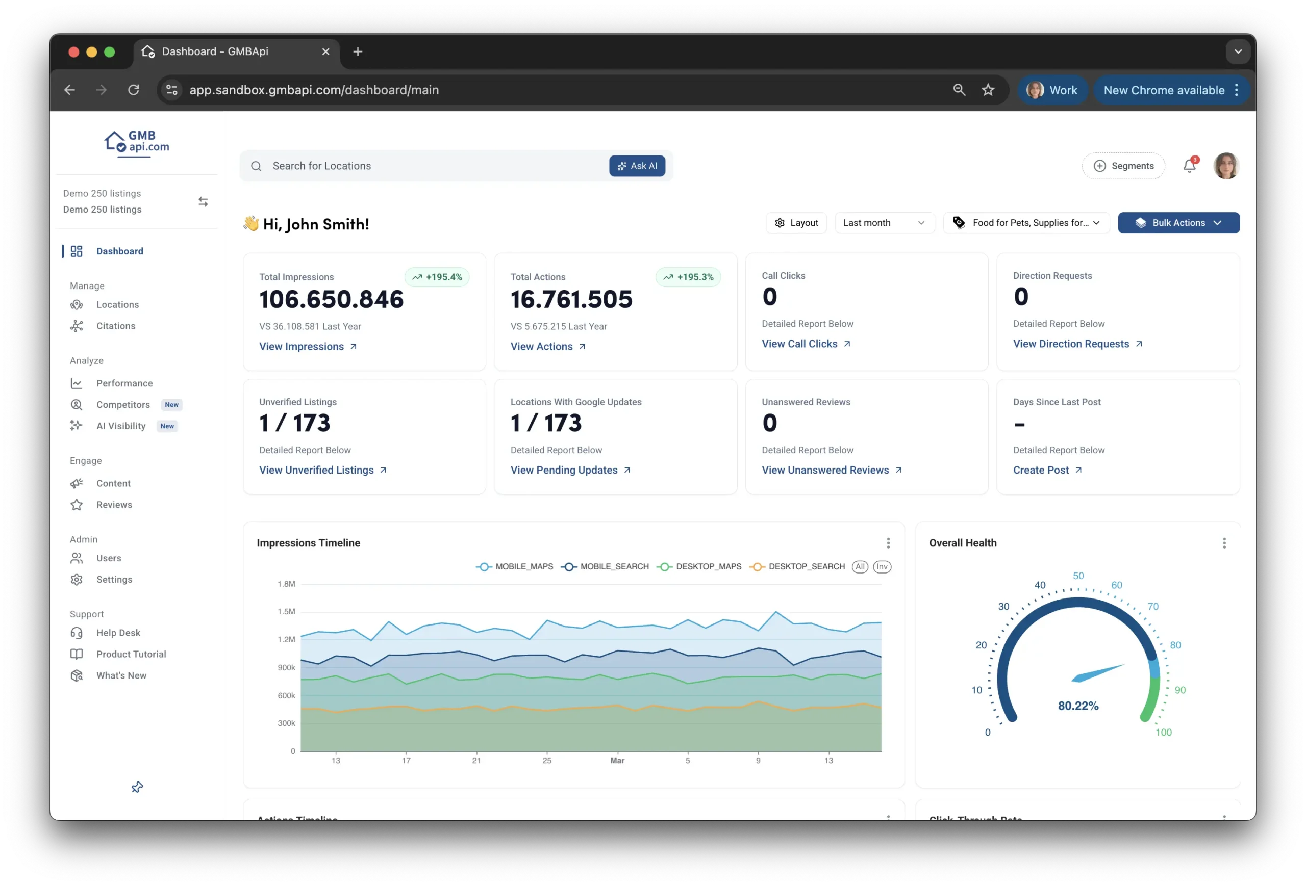 If you’re using GMBapi, accessing your Google Business dashboard is effortless – just log in! Your homepage on GMBapi serves as a convenient single dashboard offering a comprehensive overview of key metrics relevant to your business’s performance on Google.